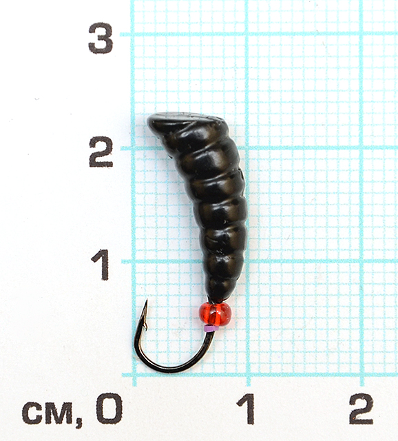 Мормышка изготовлена литьем из свинца с порошковым покрытием, имеющим высокую устойчивость к истиранию. Уникальная технология напыления данного покрытия позволила избежать затекания краски в отверстие для лески.