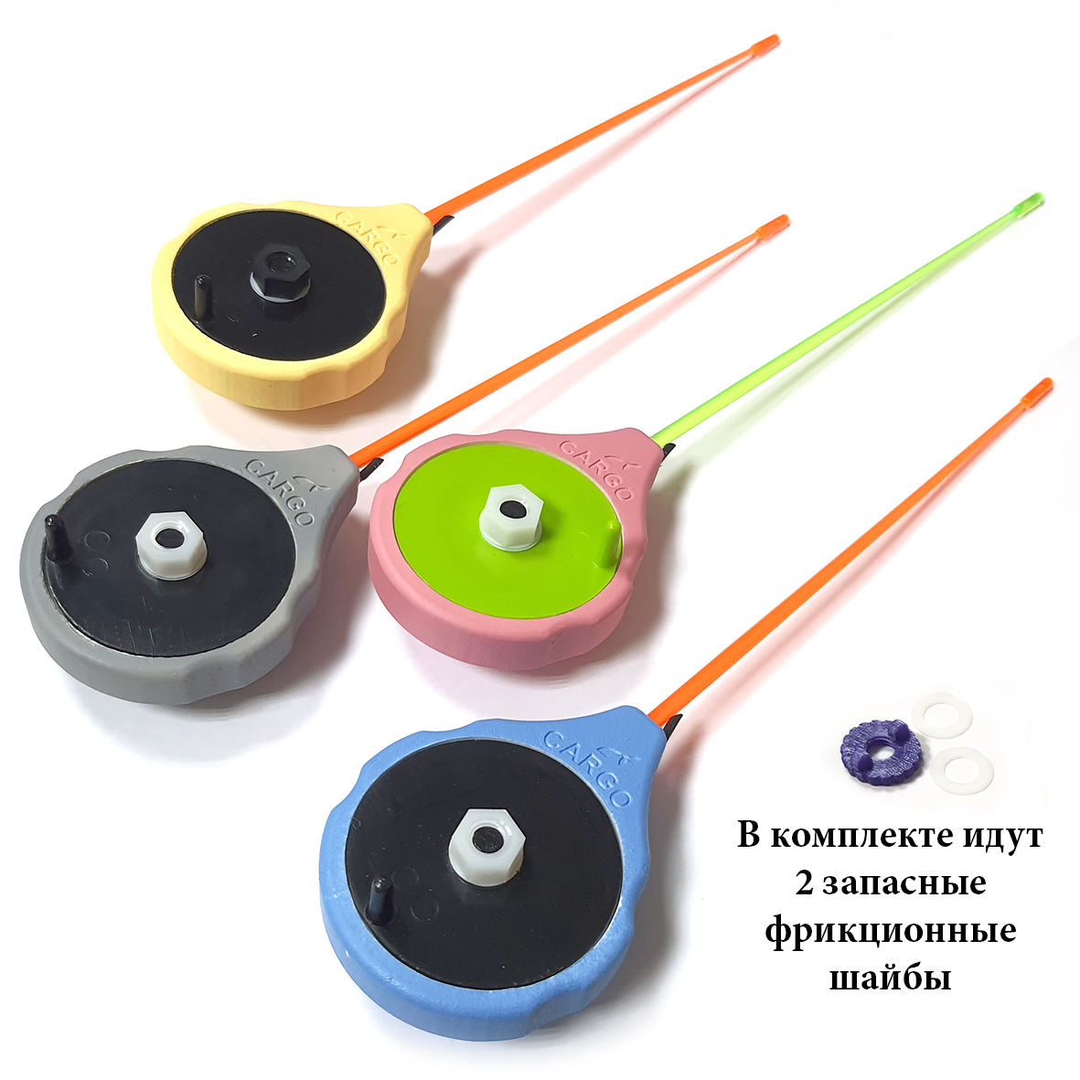 Удочка изготовлена из пенопласта высокой плотности. Хлыст изготовлен из поликарбоната, который сохраняет свою гибкость при минусовых температурах. И служит хорошим амортизатором. Главной отличительной особенностью является наличие регулируемого фрикционного тормоза, который позволяет использовать зимнюю удочку со сверхтонкими лесками, и допускает возможность эксплуатации данной снасти в спортивной зимней рыбалке. Сопротивление вращения катушки регулируется тремя фрикционными шайбами. Для плавности вращения шпули каждое изделие доводится мастером вручную. Балалайки CARGO уже использовались спортсменами Орловской области на чемпионате России по зимней ловле на мормышку. В комплекте с удочкой идут дополнительно 2 запасные фрикционные шайбы.