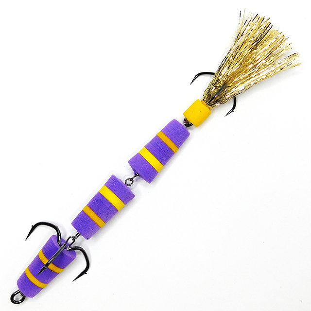 Продуманность конструкции и отсутствие критических ошибок обуславливает отличную засекаемость. Положительная плавучесть задает вертикальное положение приманке и имитирует кормящегося малька. Густые хвостики из металлизированного люрекса дополнительно привлекают внимание хищника. Тройники: №1/0 и №4 - премиум-класса из австрийской легированной проволоки - очень острые и долговечные, аналоги VMC-8570 Длина - 11см |