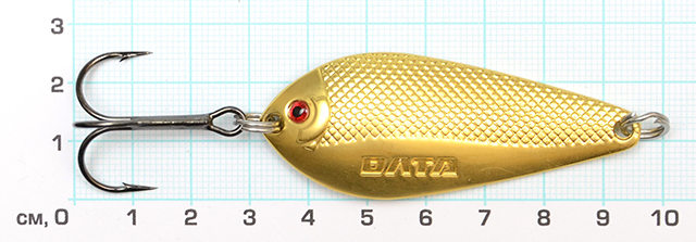 Блесна выполнена из цветного металла, благодаря чему не подвержена коррозии. Ее игра более легкая и привлекательная по сравнению с блеснами из железа. Матовое покрытие блесны, по мнению большинства опытных спиннингистов гораздо уловистее ярко-блестящих блесен и не так сильно настораживает привередливого хищника.