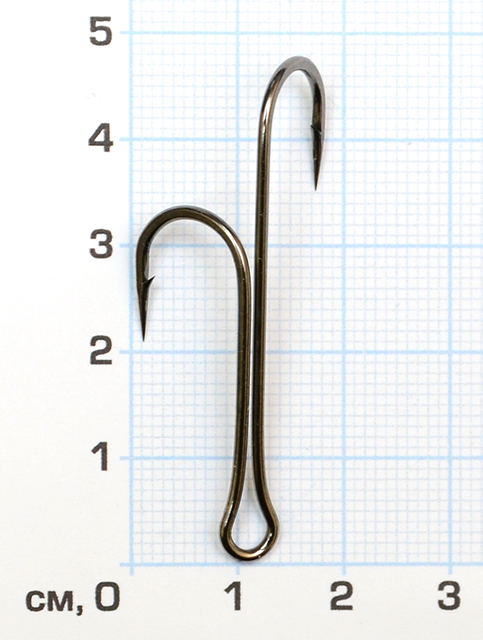 Главной особенностью этой модели двойника являются два крючка c разной длинной цевья. Благодаря такой конструкции этот двойник идеально подходит для любых оснасток, где в качестве приманки используется живая рыбка, при этом крючок с бОльшим цевьем закрепляется на спинном плавнике живца. Используется в оснащении кружков, жерлиц, переметов и т.д.