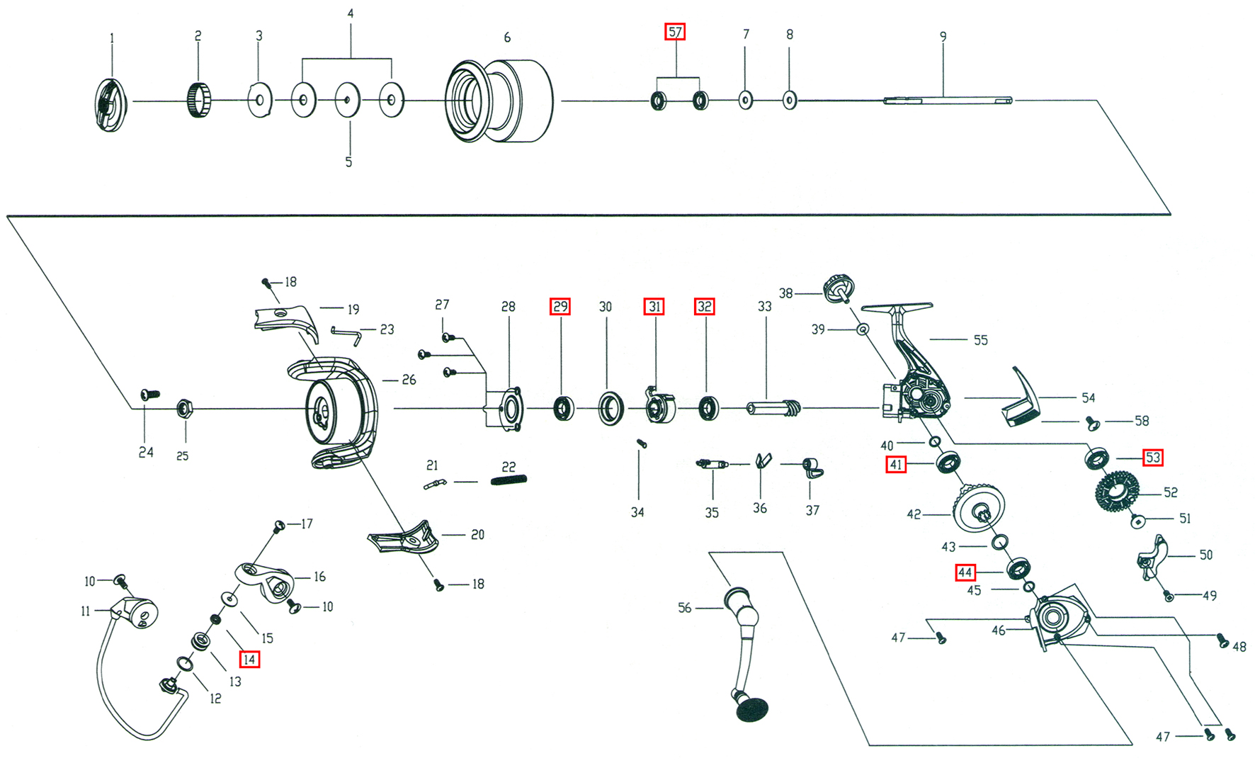 • передний фрикцион тонкой настройки, максимальное тормозное усилие - 5кг. • ролик лесоукладывателя с титановым покрытием и со специальным профилем, уменьшающим перекручивание лески. • cистема фиксации дуги лесоукладывателя, предотвращающая самопроизвольный сброс дуги. • прочная алюминиевая рукоятка с возможностью правосторонней или левосторонней установки. • корпус и ротор из высокопрочного пластика. • 1 алюминиевая шпуля + 1 алюминиевая шпуля типа «Match». • внешний диаметр бортика шпули - 41,5мм • лесоемкость шпули: 0,285мм/100м • лесоемкость шпули "Мatch": 0,205мм/100м • передаточное число - 5,2 : 1 • скорость подмотки - 65см • вес - 200гр |