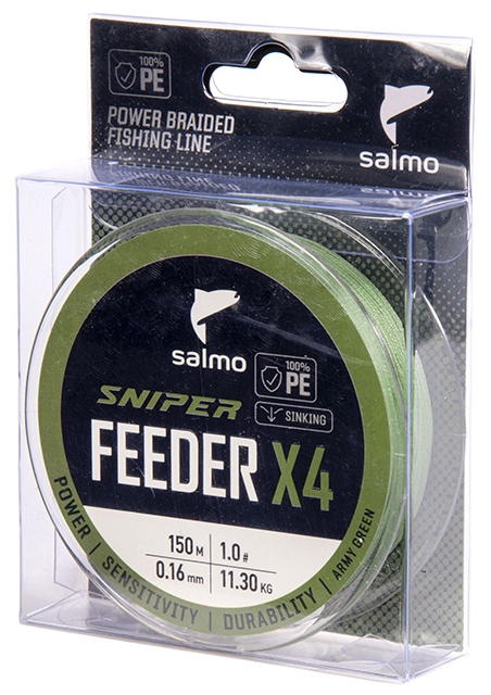 Шнур SNIPER x4 Feeder Braid Army Green (Salmo), 150м, 0.10мм (#0.4)