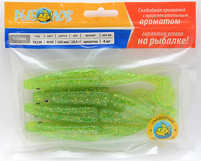 Виброхвост съедобный "НАРВАЛ" (Рыболов), 120мм, аромат - "креветка"
